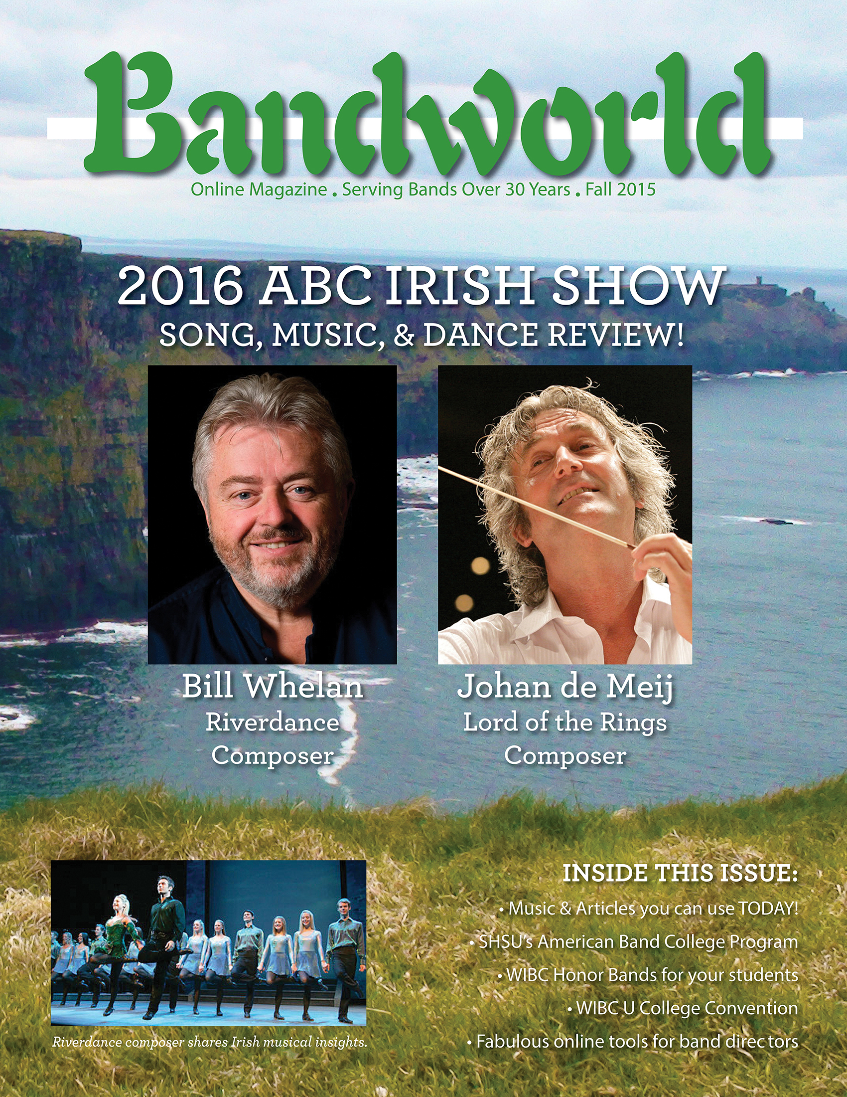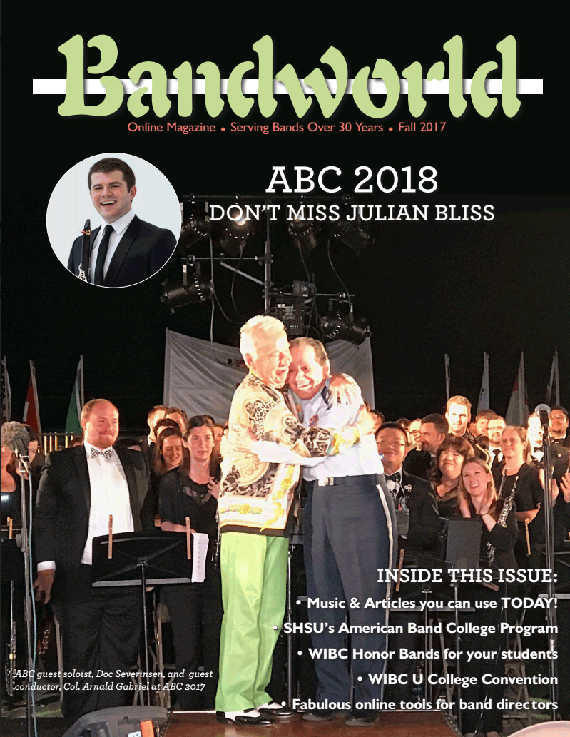 Click on the magazine photo below to access all of the articles online. Print out PDF copies of complete articles or full band arrangements for you and your band program.