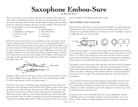 Vibrato, phrasing and interpretation are an extensive treatise beyond this Sax Embou-Sure article. So get the basics first and many of the other facets of playing will come easily.